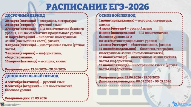 Минобрнауки России определяет сроки и единое расписание проведение ЕГЭ